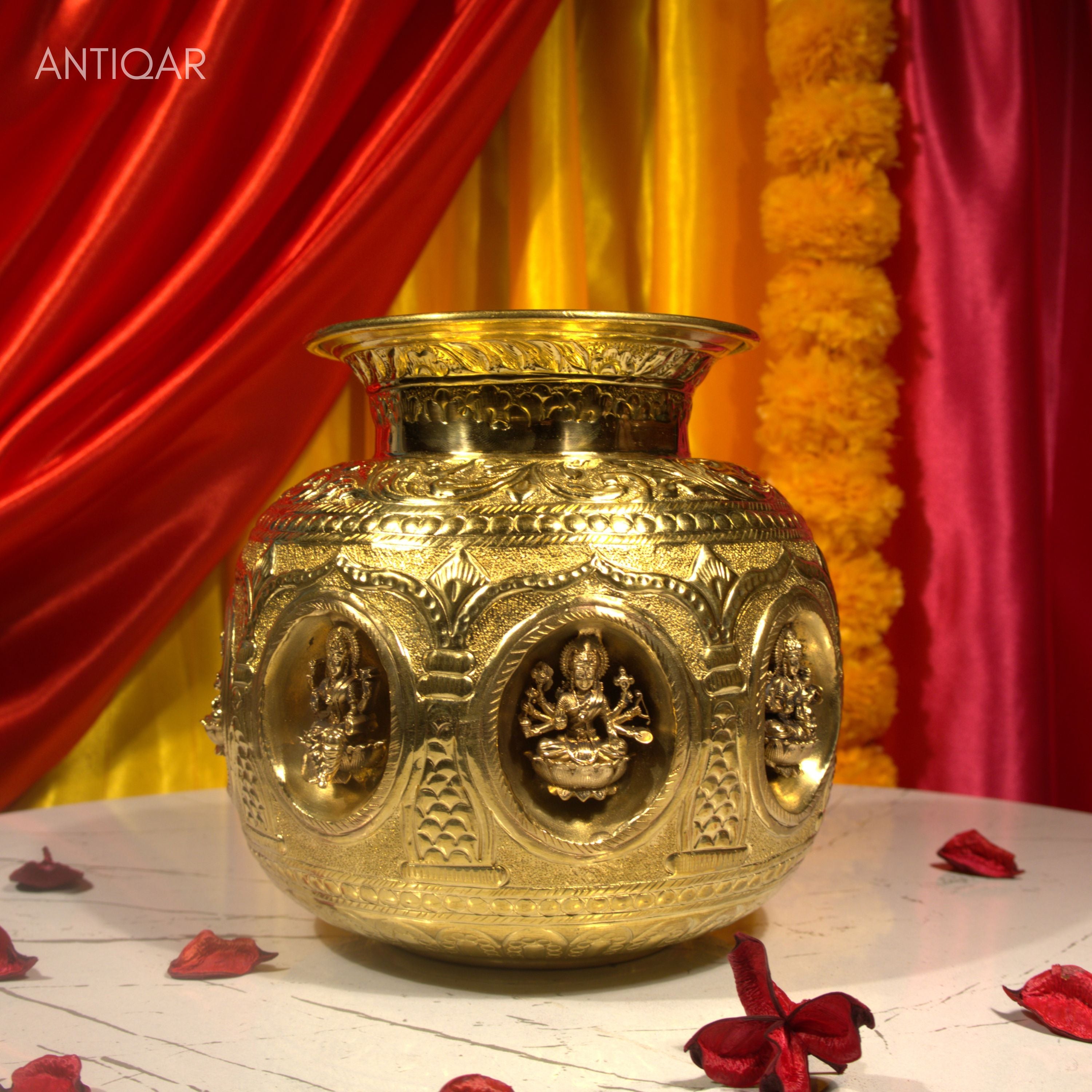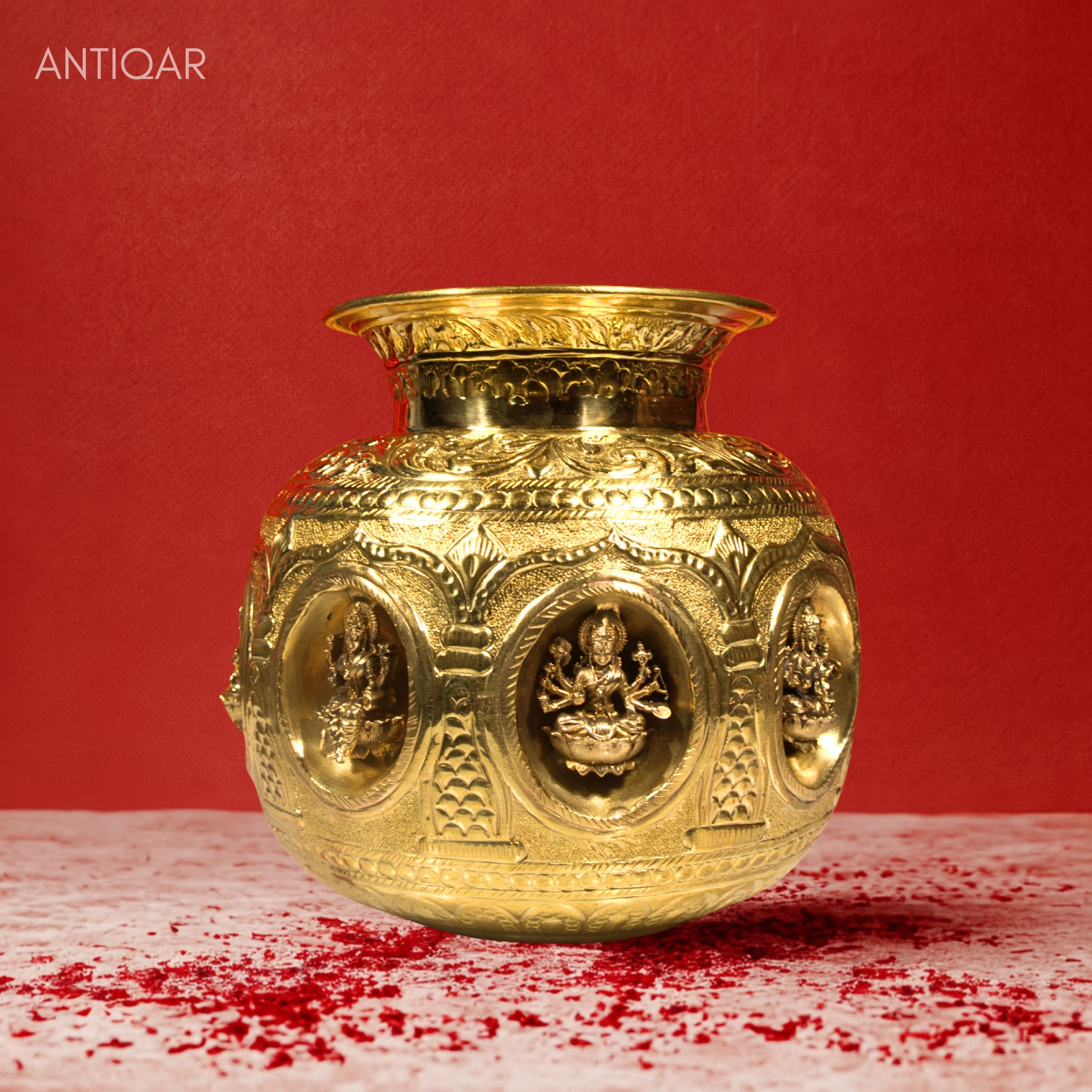 Brass Etching Design Plate - 1.5cm | Antique Golden Finish | Traditional use for Pooja in Temple, Festivals and Home