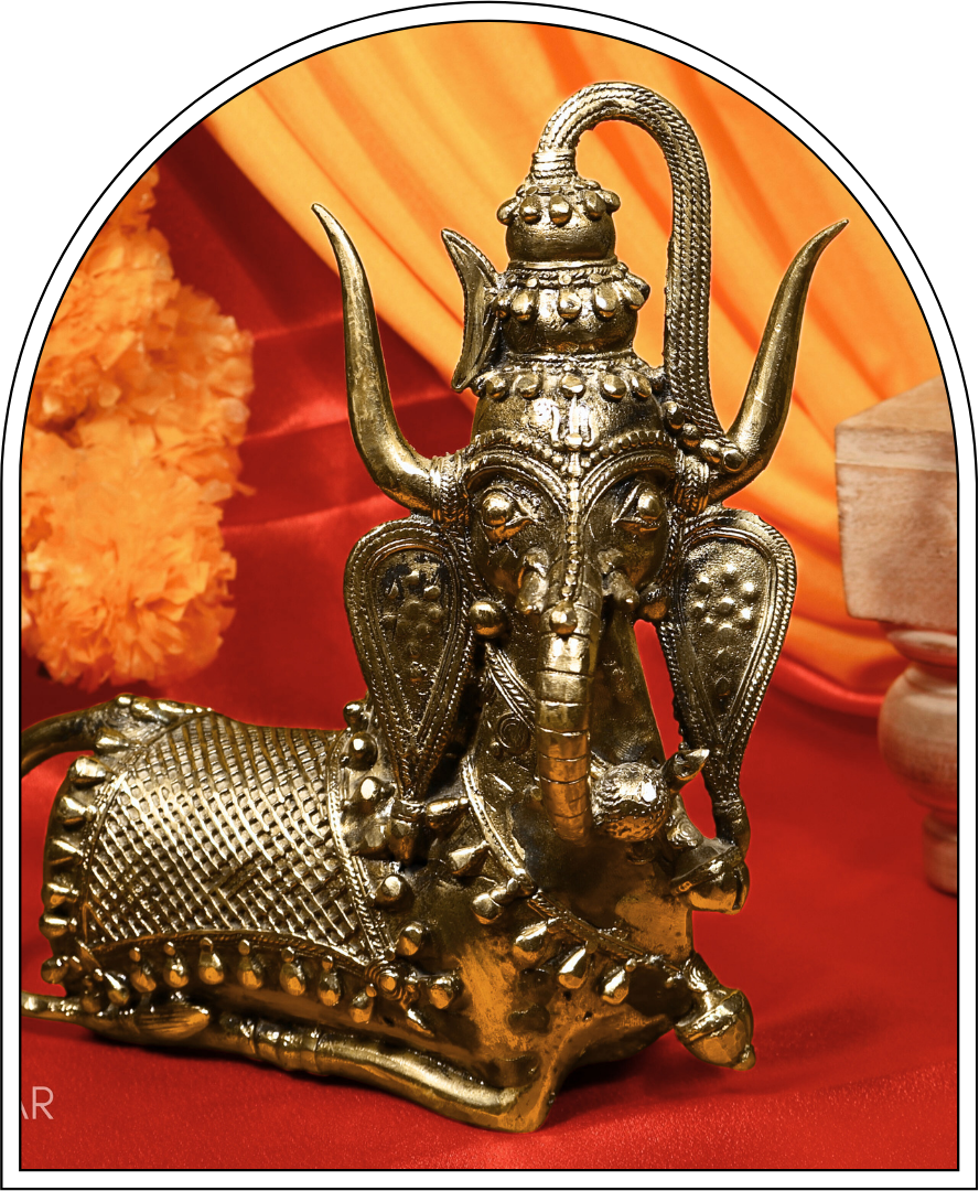 Brass Elephant Showpiece in Floral Design - 4cm | Antique Golden Finish | Decorative Figurines for Temple, Home & Office