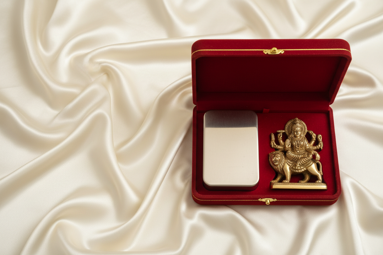 Brass Designer Radhakrishna Idol - 8.5cm | Antique Finish | Spiritual Idol for Temple & Home Decor